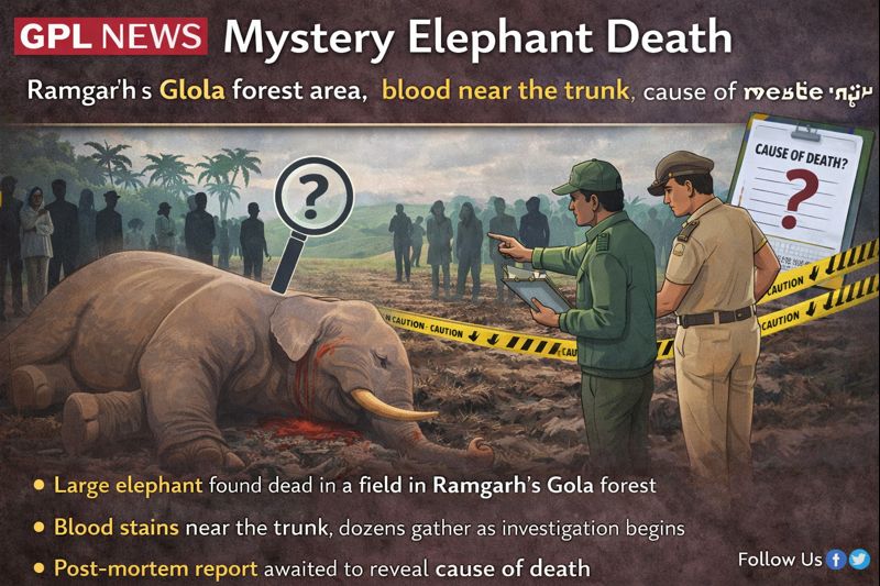 Mystery Elephant Death: रामगढ़ के गोला वन क्षेत्र में खेत में मिला विशाल हाथी का शव, सूंड के पास खून, मौत की वजह बनी रहस्य January 13, 2026