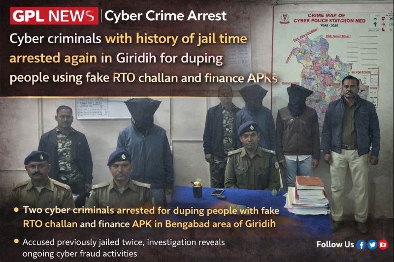 Giridih Cyber Crime Arrest: फर्जी फाइनेंस APK फाइल के जरिये ठगी करने वाला तीसरी बार गिरफ्तार January 11, 2026