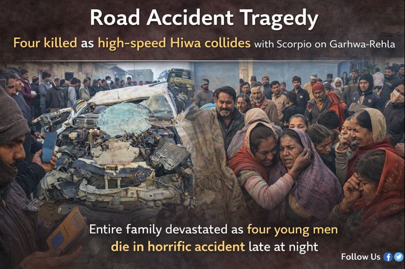गढ़वा: गढ़वा–रेहला मार्ग पर हाईवा की भीषण टक्कर, एक ही परिवार के चार युवकों की दर्दनाक मौत, सगाई की खुशियां बनीं मौत का सफर January 12, 2026
